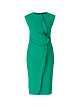 Зеленое платье облегающего кроя выполнено из струящейся эластичной ткани. Украшено изящной асимметричной драпировкой. Дополнено округлым вырезом и короткими рукавами, а также молнией сзади. Элегантное платье для вечерних образов.