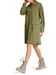 Платье красивого оливкового оттенка изготовлено из органического хлопка, сертифицированного GOTS. Весь производственный процесс особенно безвреден для окружающей среды, поскольку использует меньше воды и энергии. Платье застегивается на все пуговицы и дополнено карманами, а также завязками сзади, чтобы подчеркнуть талию.
