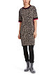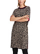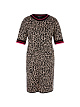 Платье с леопардовым принтом выполнено на основе сочетания натурального хлопка и вискозы. Дополнено округлым вырезом и короткими рукавами, а также контрастной полоской по краям. Эффектное женственное платье для ваших образов.