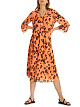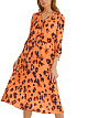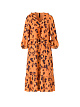 Женственное платье свободного кроя с отделкой воланом, придающим платью нотку романтизма. Платье из ткани с леопардовым принтом с оборками в выполнено из мягко струящейся вискозной ткани с шелковистой на ощупь. Рукава укорочены, имеют округлую шлицу и оторочены мелкими воланами по краям.