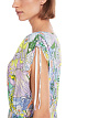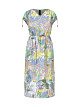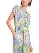 Платье с принтом. Яркое платье с экзотическим принтом выполнено из вискозы. Дополнено V-образным вырезом, короткими рукавами с регулируемыми манжетами, карманами, присборенной талией и боковыми разрезами на юбке. Струящееся платье для летних женственных образов.