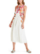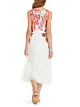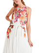 Элегантное плиссированное платье без рукавов с широким вырезом. Платье выполнено из тонкого эластичного блестящего трикотажа и украшено ярким принтом в виде тюльпанов. Талию можно женственно подчеркнуть поясом с завязками. На спинке изделия тонкая молния