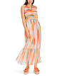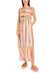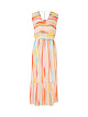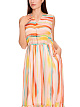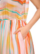 Легкое платье с ярким принтом выполнено из струящейся ткани. Дополнено V-образным вырезом спереди, разрезом на завязках сзади, боковыми карманами и слегка расклешенной юбкой с воланами. Воздушное платье для женственных образов в жаркую погоду.