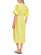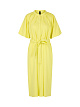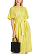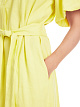 Желтое платье свободного кроя выполнено из сочетания натурального льна и вискозы с добавлением эластана. Дополнено узким воротником-стойкой, изящными складками, рукавами средней длины, короткой планкой на пуговицах и поясом в тон. Элегантное платье для женственных образов.