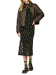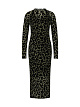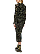 Зеленое облегающее платье с контрастным леопардовым принтом выполнено из сетчатого материала с подкладкой в виде платья-комбинации. Дополнено воротником и длинными рукавами. Роскошное платье для вечерних образов.