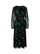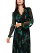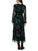 Темно-зеленое роскошное платье выполнено из струящейся вискозы с мягкой подкладкой. Украшено красочным принтом с эффектными перьями. Дополнено V-образным вырезом, прозрачными рукавами и расклешенной юбкой. Застегивается на молнию. Такое необычное платье не оставит вас без внимания окружающих.