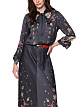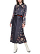 Длинное серое платье выполнено из струящейся вискозы с принтом с узором пейсли. Расклешенная юбка и рукава с разрезами на манжетах создают ощущение легкости, а бант на воротнике и потайные пуговицы добавляют изысканности. Узкая кулиска подчёркивает талию. Изысканное платье для особенных выходов.