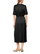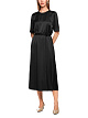 Черное струящееся платье миди выполнено из вискозного атласа с блеском. Модель с поясом на талии, который подчеркивает женственный силуэт, дополнена округлым вырезом, рукавами средней длины с небольшими разрезами на манжетах и расклешенной юбкой на запах. В этом платье сдержанная элегантность сочетается с изысканным кроем.