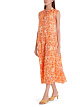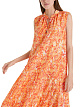 Платье с набивным рисунком выполнено из высококачественного микса материалов: шелка и хлопка. А-образный силуэт. Детали с воланами и небольшие рюши на шее подчеркивают женственный образ. Платье на подкладке.