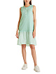 Платье выполнено из эластичного хлопка в рубчик, который дклает изделие очень удобным в носке. Оборка, прикрепленная к низу, выполнена из деликатно мерцающей микрофибры и создает захватывающий визуальный и тактильный контраст. Широкие бретельки и планка на кнопках завершают образ.