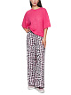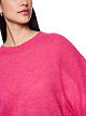Розовый пуловер свободного кроя выполнен на основе сочетания натуральной шерсти и шерсти альпака. Дополнен округлым вырезом и широкими рукавами средней длины. Уютный базовый пуловер на каждый день.