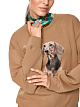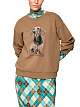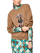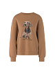 Коричневый свободный джемпер выполнен из эластичного хлопка. Украшен принтом с изображением таксы. Дополнен округлым вырезом и длинными рукавами с манжетами. Уютный и стильный джемпер на каждый день.