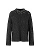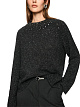 Темно-серый пуловер выполнен на основе сочетания натуральной шерсти и шерсти альпака с добавлением люрекса. Украшен стразами и пайетками. Дополнен округлым вырезом и длинными рукавами. Эффектный пуловер для сияющих образов.