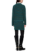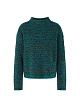 Зеленый вязаный пуловер в синюю и коричневую фактурную полоску выполнен на основе сочетания натуральной шерсти, вискозы и шерсти альпака. Мерцающий люрекс добавляет легкий блеск. Дополнен воротником-стойкой и длинными рукавами. Элегантный и уютный пуловер для образов с брюками или юбками.