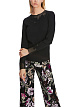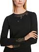 Пуловер облегающего кроя выполнен из натурального хлопка с добавлением эластана. Украшен прозрачными вставками с изящными кружевами. Дополнен округлым вырезом и длинными рукавами. Элегантный пуловер для деловых и более расслабленных образов.