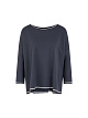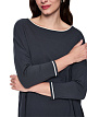 Серый легкий джемпер свободного кроя выполнен на основе высококачественной вискозы. Рукава длиной три четверти, контрастная отделка в полоску по краям и боковые разрезы дополняют непринужденный дизайн. Спущенная линия плеча обеспечивает комфортную посадку.