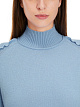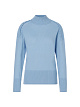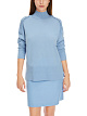 Голубой пуловер пуловер выполнен из натурального кашемира. Дополнен воротником-стойкой, манжетами и подолом в рубчик, а также изящными воланами и небольшими разрезами по бокам. Элегантный базовый пуловер.