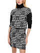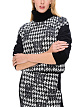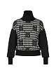 Черно-белый пуловер выполнен из эластичной ткани с вставками из натурального органического хлопка и вискозы. Украшен принтом «гусиная лапка». Дополнен высоким воротником и длинными рукавами с манжетами. Стильный и уютный пуловер для образов в прохладную погоду.