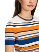 Многоцветный пуловер в яркую полоску выполнен на основе переработанной вискозы. Дополнен округлым вырезом и короткими рукавами. Стильный вариант для эффектных повседневных образов с юбками и брюками.