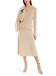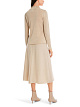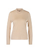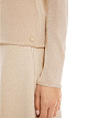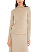 Бежевый пуловер облегающего кроя выполнен из трикотажа на основе вискозы с добавлением металлизированных волокон. Дополнен высоким воротником и украшен кружевной отделкой на рукавах и подоле. Стильный пуловер для нежных женственных образов.