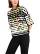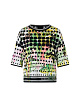 Вязаный в Германии свитер с коротким рукавом. Свитер оверсайз тонкой вязки со спущенными плечами. Спереди красочный мотив джунглей, а сзади компьютерная графика. Этот предмет одежды изготовлен из органического хлопка и связан в Германии. Он связан и отделан с использованием новейших технологий в Германии. Отдельные детали, такие как спинка, перед и т.д., сшиваются вместе в европейских компаниях-партнерах.