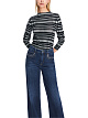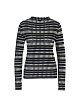 Полупрозрачный пуловер в полоску выполнен на основе сочетания натурального хлопка и вискозы. Дополнен широки узким воротником и длинными рукавами. Стильный базовый пуловер на каждый день.