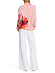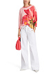 Яркий пуловер прямого кроя выполнен из фактурного трикотажа с добавлением высококачественной шерсти альпака. Дополнен вырезом «лодочка», спущенной линией плеча и слегка укороченными рукавами.