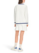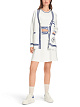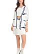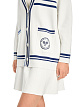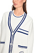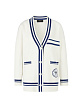 Белый свободный кардиган выполнен из мягкой пряжи с добавлением вискозы. Дополнен V-образным вырезом, отделкой в контрастную полоску и рубчик, накладными карманами и логотипом. Застегивается на пуговицы. Уютный кардиган для ваших образов