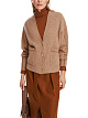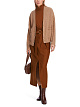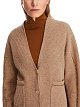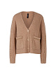 Коричневый кардиган в рубчик выполнен из натуральной шерсти. Дополнен V-образным вырезом, накладными карманами и вставками с золотистыми цепочками. Стильный кардиган для уютных осенних образов.