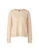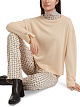 Бежевый вязаный пуловер свободного кроя выполнен на основе натуральной шерсти с добавлением кашемира. Пуловер дополнен рукавами с разрезами, украшенными пуговицей, а детали из трикотажа в рубчик подчеркивают дизайн. Широкий овальный вырез завершает образ.