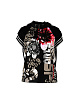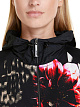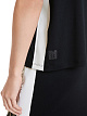 Футболка дополнена нейлоновым капюшоном с кулиской и контрастными цветными вставками по бокам. Футболка украшена ярким принтом спереди. Короткие рукава заканчиваются эластичными полосатыми манжетами.