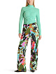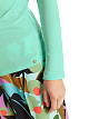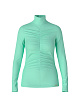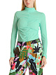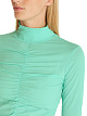 Зеленая футболка облегающего кроя выполнена из эластичной ткани. Дополнена высоким воротником, длинными рукавами и декоративным швом со складками на груди. Идеально подходит для элегантных образов с брюками или джинсами.