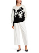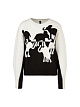 Черно-белый пуловер классического кроя выполнен из натуральной шерсти и украшен принтом с рисунками слонов. Дополнен округлым вырезом, длинными рукавами и манжетами в рубчик. Такой стильный пуловер легко впишется в повседневный образ.