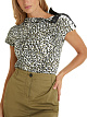 Футболка дополнена планкой на кнопках контрастного оттенка. Изюминкой стал леопардовый принт, который привлечет множество восхищенных взглядов. Сочетания хлопка и эластана делает футболку особенно удобной.