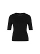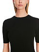 Облегающий пуловер в рубчик выполнен на основе натуральной шерсти с добавлением люрекса. Дополнен округлым вырезом и короткими рукавами. Идеальный базовый пуловер, который можно сочетать с юбками и брюками.