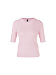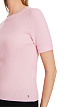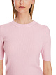 Облегающий пуловер в рубчик выполнен на основе натуральной шерсти с добавлением люрекса. Дополнен округлым вырезом и короткими рукавами. Идеальный базовый пуловер, который можно сочетать с юбками и брюками.
