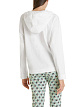 Легкий пуловер изготовлен из хлопкового трикотажного полотна, что обеспечивает максимальный комфорт при носке. Капюшон с кулиской и полоски с пуговицами по бокам выполнены из нейлона. На манжетах короткие разрезы.