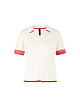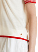 Свободная рубашка- поло из тонкой шерстяной трикотажной ткани. Тонкая трикотажная рубашка- поло с короткими рукавами и подчеркнута контрастными цветовыми полосами по краям.Декоративная деталь - круглая эмблема с золотым логотипом.