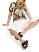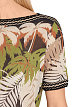 Пуловер свободного кроя выполнен из мягкого трикотажа на основе натурального хлопка. Украшен сплошным растительным принтом и фигурной хлопковой окантовкой и дополнен короткими рукавами и вырезом-лодочкой. Также данная модель имеет маркировку "Knitted in Germany" (”Связано в Германии"). Это означает, что пряжа вяжется на ультрасовременных вязальных машинах на фирменном производстве в Германии.