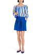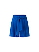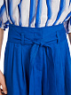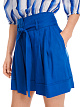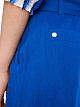 Синие широкие шорты выполнены из сочетания натурального льна и вискозы с добавлением эластана. Дополнены поясом в тон, карманами, защипами на брючинах и подворотами. Яркие шорты для элегантных летних образов.