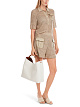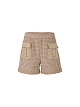 Коричневые шорты выполнены из сетчатого трикотажа с блеском на основе сочетания натурального хлопка и вискозы. Дополнены эластичным поясом и атласными карманами с клапанами. Такие изысканные шорты добавят изюминку в любой образ.