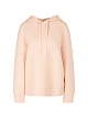Однотонный пуловер выполнен из мягкой эластичной ткани на основе натурального хлопка с необычной ячеистой фактурой. Дополнен капюшоном с завязками и длинными рукавами с манжетами, а маленькая круглая табличка с логотипом добавляет особый акцент.