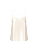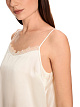 Бежевый топ А-образного силуэта выполнен из натурального шелка. Дополнен тонкими регулируемыми бретелями и разрезами по бокам. Украшен кружевом и лаконичным фирменным логотипом. Изящный базовый топ для стильных многослойных образов.