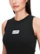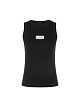 Черный облегающий топ в рубчик выполнен из натурального хлопка с добавлением эластана. Дополнен контрастной вышивкой на груди, округлым вырезом и широкими бретелями, а также окантовкой по краям. Стильный базовый топ на лето.