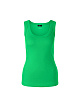 Зеленый топ приталенного кроя выполнен из эластичного трикотажа в рубчик на основе натурального хлопка. Дополнен округлым вырезом и широкими бретелями. Отличный базовый топ на каждый день.