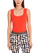Топ без рукавов из хлопка. Топ облегающего кроя выполнен из натурального хлопка с добавлением эластана. Дополнен глубоким округлым вырезом и широкими бретелями. Стильный базовый топ для образов на каждый день.