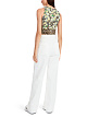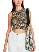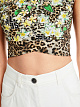 Леопардовый облегающий топ выполнен из эластичной ткани. Украшен цветочным принтом и фирменным логотипом. Дополнен округлым вырезом и широкими бретелями. Эффектный топ на лето.