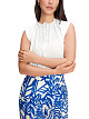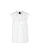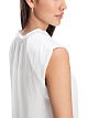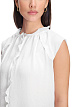 Белый топ выполнен из струящейся ткани. Дополнен округлым вырезом с V-образным разрезом и изящными оборками. Элегантный топ для женственных и воздушных образов.
