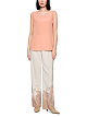 Изысканный розовый топ выполнен из натурального струящегося шелка. Дополнен классическим округлым вырезом, а проймы по бокам украшены кружевом.. Современный дизайн в двух оттенках спереди и сзади придает этому топу элегантный и модный вид.