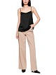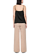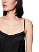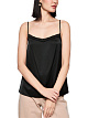 Черный элегантный топ выполнен из струящейся вискозы с отделкой из роскошного кружева в тон. Изделие дополнено тонкими регулируемыми бретелями Такой изящный топ можно сочетать и с брюками, и с юбками.